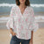 Creative floral element printing digital printing casual trend V-neck lotus edge T-shirt women's m301769