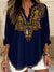 Loose 3D Printed V-Neck Shirt Long Sleeve T-Shirt m301360