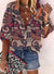 Fashion summer European and American women's clothing stand-up collar loose button retro printed casual shirt m301723