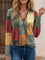 Casual loose print V-neck zipper long-sleeved cashmere T-shirt m300856