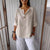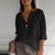 Loose T-shirt Women's V-neck cotton and linen button-up top m300385