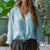 Casual V-neck long-sleeved loose pullover net color multi-color women's top T-shirt m301425