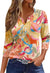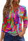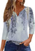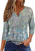 3D printed women's V-neck three-button seven-quarter sleeve fashion casual top m300616