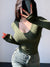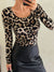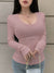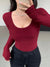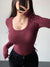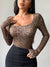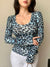 Hot-selling low-neck ribbed knitted women's 3D printing long-sleeved T-shirt m301564