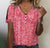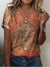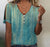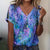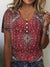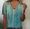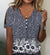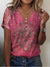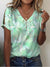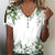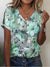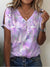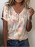 3D printed V-neck button-up T-shirt top daily short-sleeved m301263