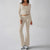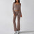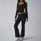 Solid color casual knitted long-sleeved top yoga suit two-piece pants set m301815