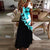Summer new lace suspender v-neck fashion printed loose dress m301218