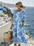 Women's medium and long sleeves side bag crew neck dress seaside vacation loose dress m302606