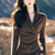 French Elegant Coffee V-Neck Long Sleeve Sweater Knitted Sweater Women's Autumn and Spring Versatile Slim Fit M301759