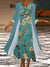 New women's long dress two-piece set flower and grass print crew neck dress m301251
