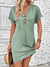 Women's Fashion Versatile Buckle V-Neck Shoulder Roll Sleeve Solid Color Dress m300945