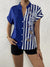 Women's summer new double-spell contrasting color flower button-up cardigan short-sleeved shirt women's m300991